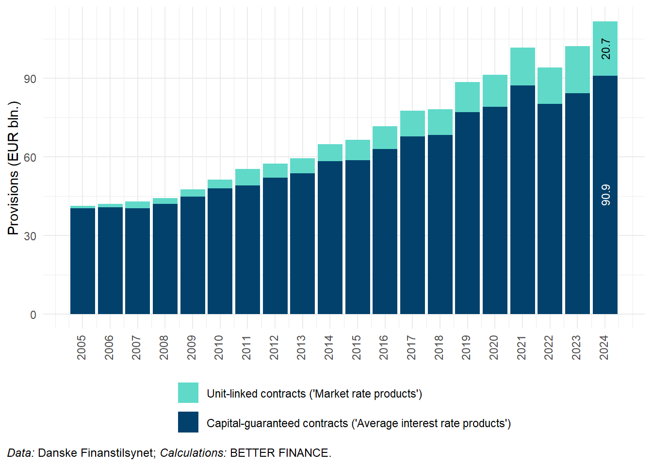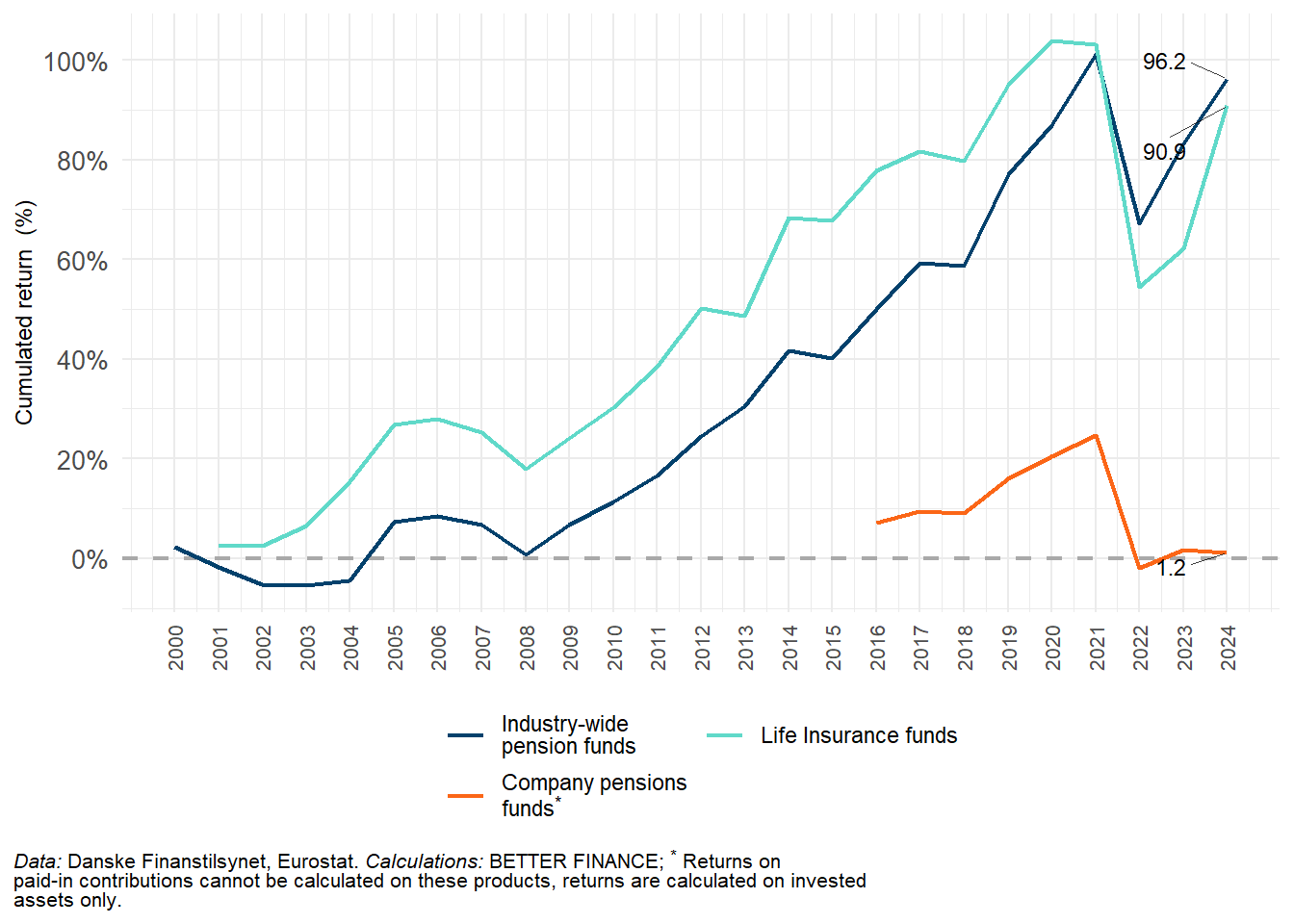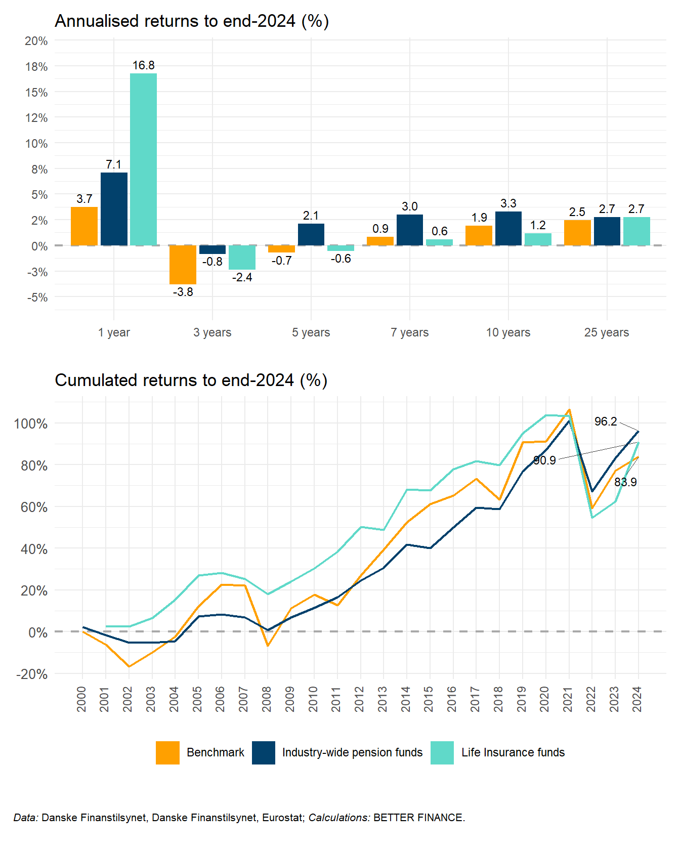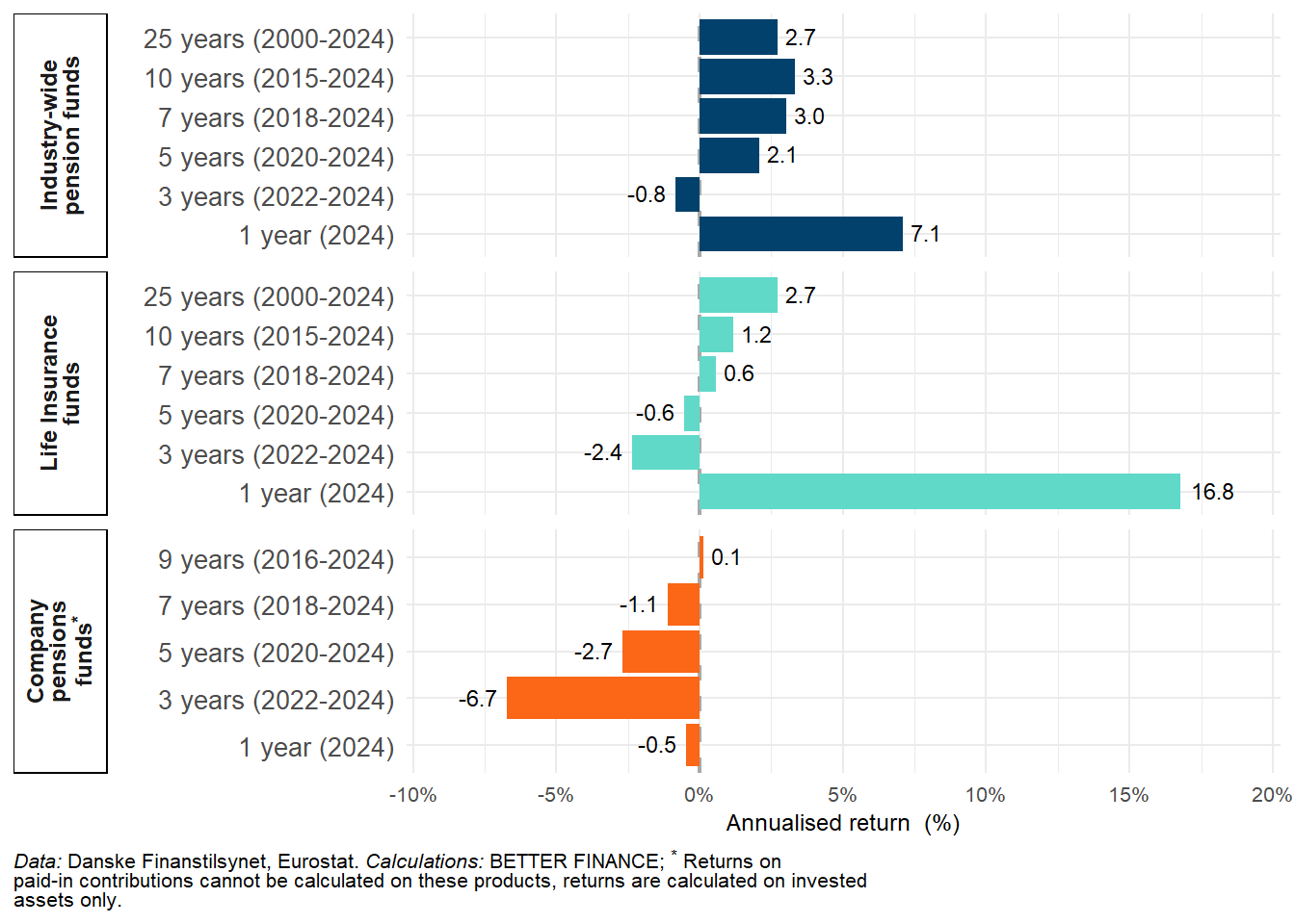 | Data: Danske Finanstilsynet, FaktaOmPension.dk, Danske Finanstilsynet, Eurostat; Calculations: BETTER FINANCE | |||||||